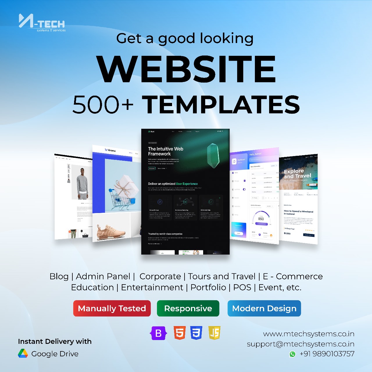 We offer 500+ Manually Tested Responsive Website Templates for purchase at 999 INR.